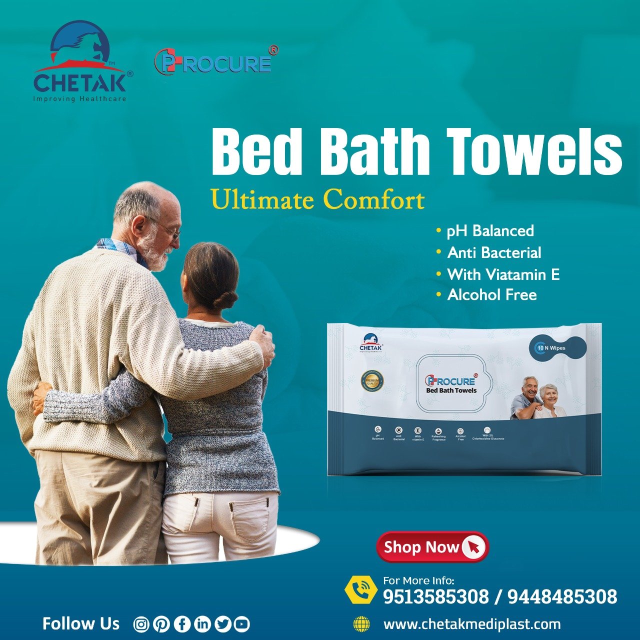 PROCURE Bed Bath Towel with 2% Chlorhexidine :- It cleans & moisturize skin & helps to relax & feel better. It is ideal for holiday & outdoors where bathing is difficult and can be Used in cold & warm Fragrance, Key Ingredients:- Aqua & Glycerin keeps your body soft and graceful. Aloe Vera Extract which gently cleans & moisturizes skin. It is also a safer alternative for person who requires body cleaning while being bed ridden or require partial assistance.